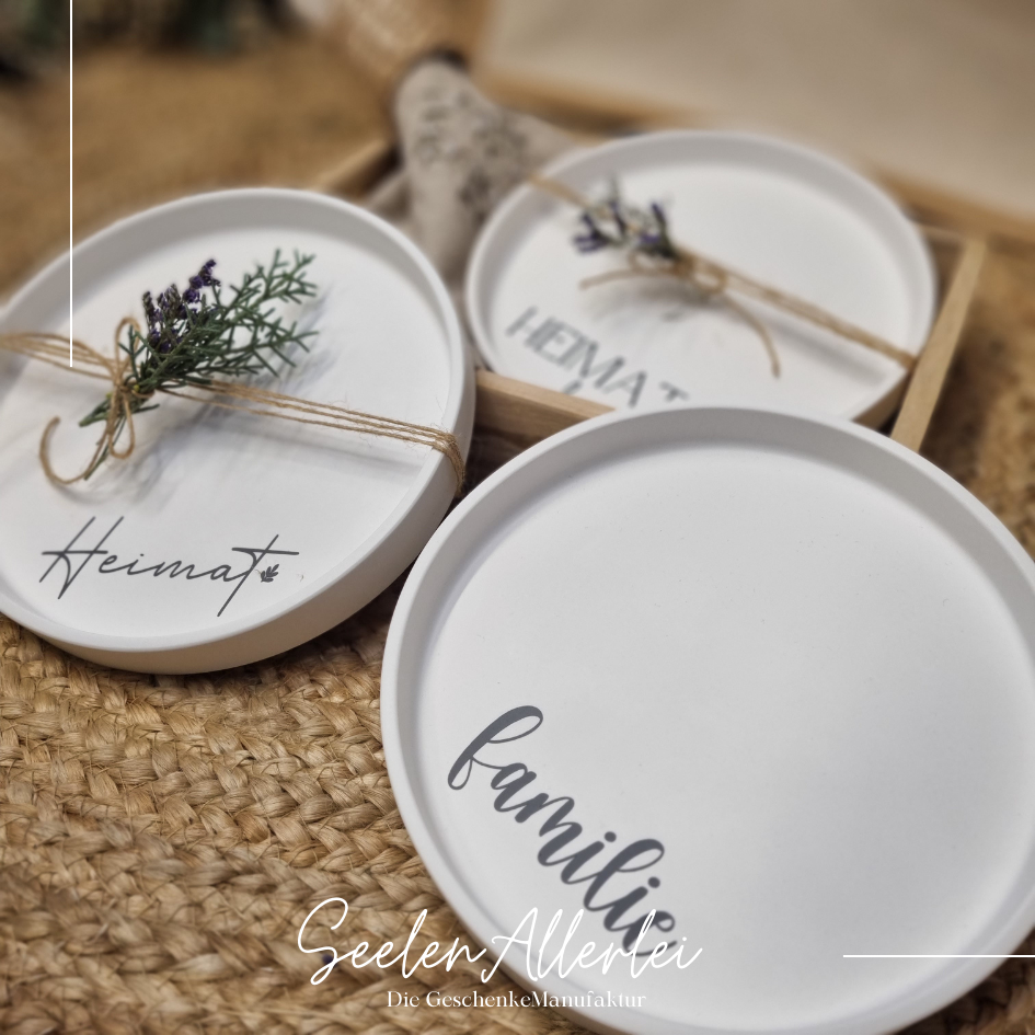 Diese drei wunderschönen Tabletts sind einfach ein toller Hingucker auf dem Tisch oder der Theke. Praktisch für Süßigkeiten, Keksen oder auch einfach schick dekoriert mit Kerze, kleinen Häusern oder Blümchen.