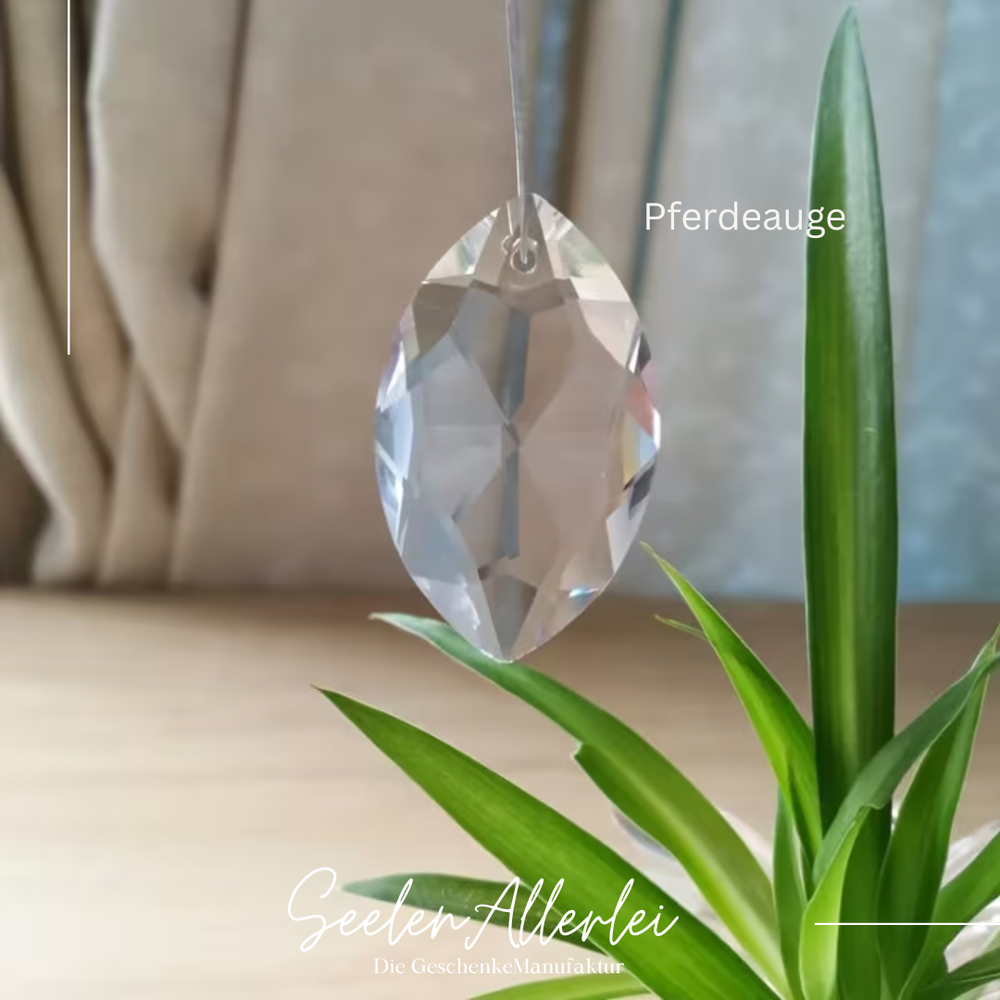 – HängeLänge ca. 50-60 cm | Kristallkugel 40mm (schwer) | Blumeanhänger 45mm | Stern 3,5cm | Ring 5cm | Pferdeauge 4cm | Tropfen 4cm