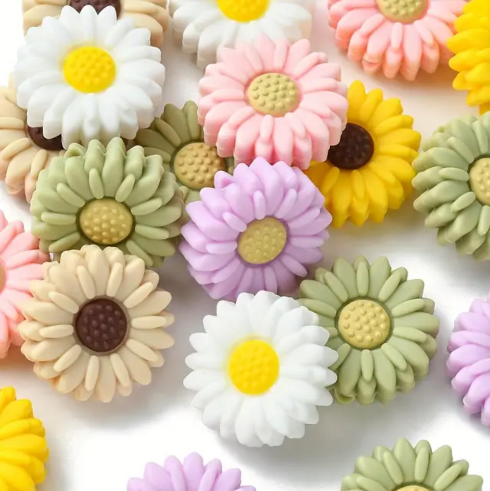– Handgefertigt mit einer Silikonperle in Blumenform, Holzperlen Natur & Kristallglasanhänger