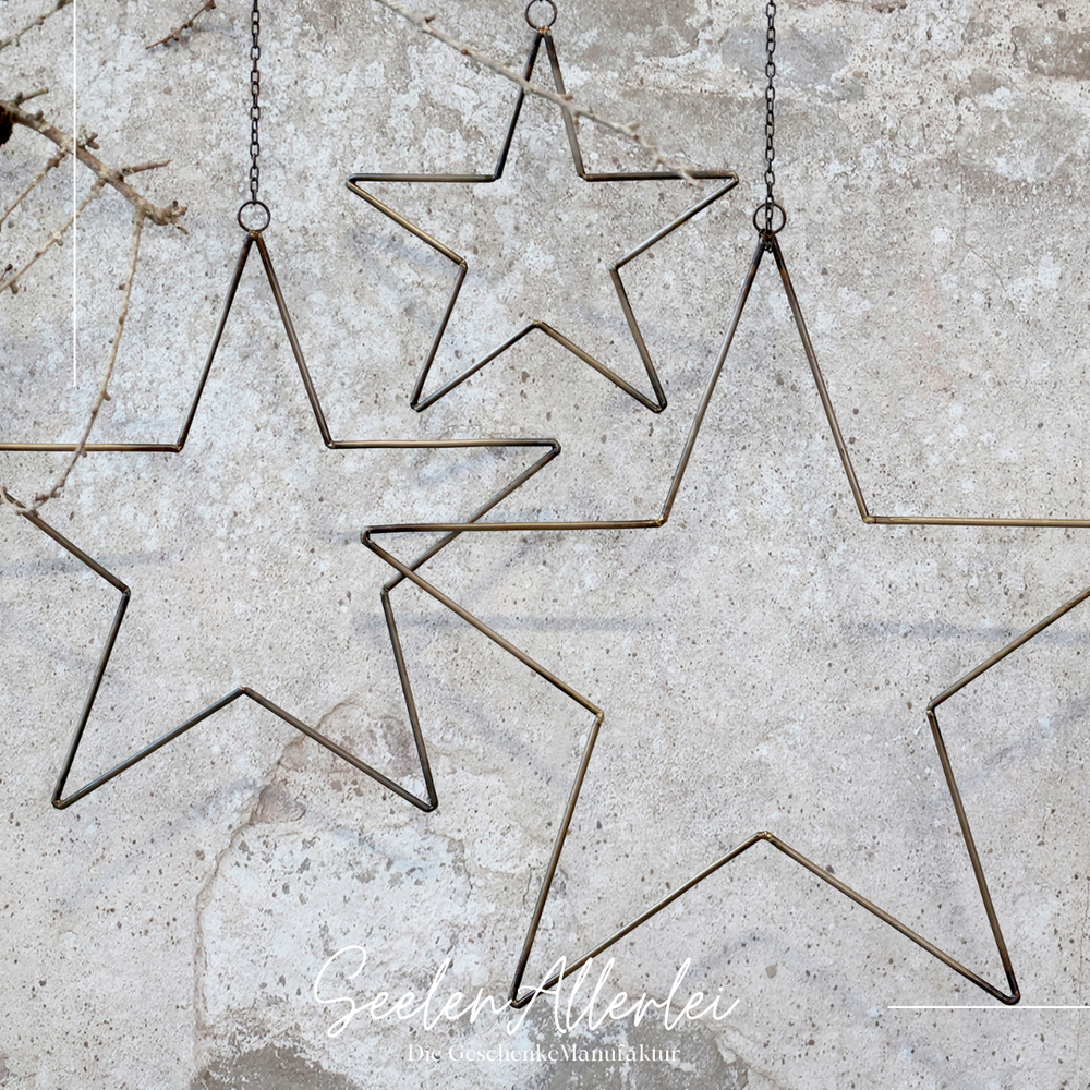 Wunderschöne Metallsterne zum Hängen - entweder ins Fenster oder an die Tür - oder auch für DIY-Projekte mit Lichterkette und ein paar Zapfen einfach wundervoll und schlicht.